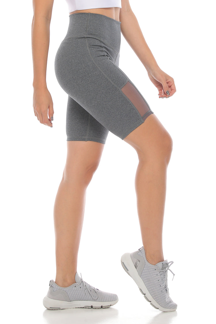 Soft High-Waisted Biker Shorts with Mesh Panels and V-Seam Detailing